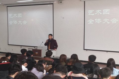 3月16日上午,我院大学生艺术团全体成员在D2教室隆重召开新学期全体大会。指导老师史良参加了此次大会,他在会上向全体人员致以新年问候,详细询问春节生活,了解各个队新学期训练情况,指出训练不足,对汇报演出说出自己想法,列举新学期将要举行的重大演出任务,对艺术团奖惩制度进一步强调,并对新学期的相关任务提出具体希望和要求,鼓励大家以饱满的热情投入新的训练当中。