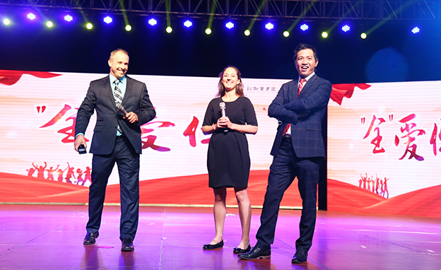 第三篇章“全爱你”。大合唱《龙的传人》唤起了师生缅怀革命先烈,弘扬爱国主义的精神,激发医学生的职业使命感。结束歌曲《渴望光荣》伴随着国旗护卫队高高举起的五星红旗,燃起了每一个在场观众的责任之心和爱国之情,他们伫立凝望,目光如炬,举手投足间无不透漏着中国精神。