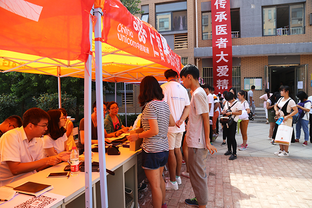 各书院认真筹备,精心安排,在公共区域内设置了新生签到处、新生缴费处、军训服装领取处、白大衣领取处、家长休息处等服务点,新生到所在书院办理手续、领取物品、入住寝室。迎新工作人员及学生志愿者认真负责,热心服务,报到过程整齐有序。