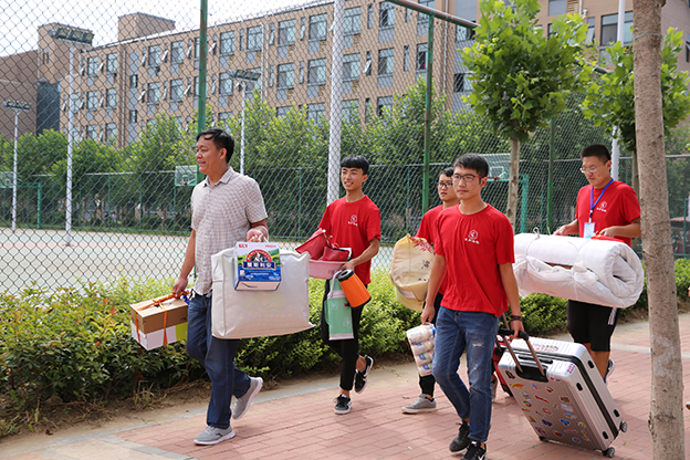 学院在郑州东高铁站设立了迎新点,2辆大巴车接送学生及家长来校报到。平原新区祝楼乡派出所派出8名交警、6名治安警协助保卫科在校门口维持交通秩序。校门口有8辆迎新服务车往来接送新生和行李,迎新接待处为新生提供全面、贴心的服务。校园平面图、报到流程图指引新生和家长顺利入学。430余名志愿者,遍布校园各个角落,维持交通并开展服务。