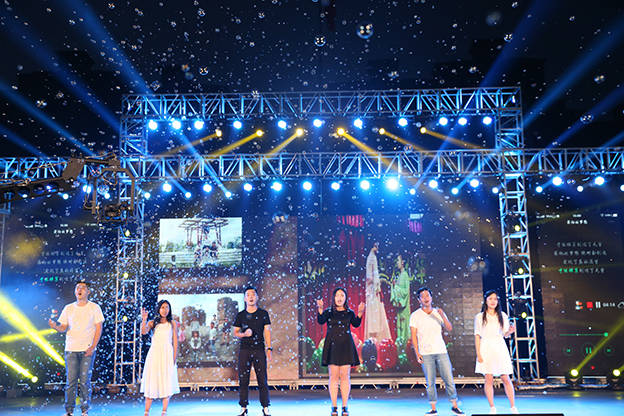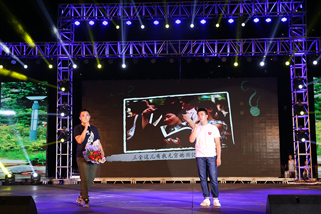 舞台两旁微博墙上满载着毕业生的离别情绪:“再见了相互嫌弃的老同学,再见了的青春的最后一页”,“陪伴是最长情的告白”,“诗酒趁年华,今晚让我们笑饮千杯,不诉离殇”“兄弟姐妹们,不说再见!”……一句句肺腑之言出现在互动平台上,表达了对毕业的不舍和对校园的眷恋!