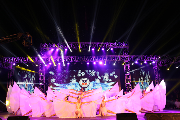 开场舞《让“全”世界为我们加油》拉开了晚会序幕,晚会分三个篇章。第一篇“5又4分之3的青春”,致敬青春,紧握梦想。歌曲《最初的梦想》让毕业生回忆自己的梦想;我院外教及他的“国际友人”给大家带来一首《三全RAP》引得全场观众阵阵欢呼。第二篇章为“yi路有你”。小品《一生所爱》淋漓尽致表现出了医学生的“日常生活”,其中提到我院实习生在河南省人民医院实施“心肺复苏术”救活危重病人的经历,并以庄严的医学生誓词收尾,引起现场热烈掌声;歌曲《一次就好》伴着现场观众手中的手机闪光灯,一字一句,令人感动;互动《一路有你》16位医学教授缓缓走出,展现出他们不同于教学时的美丽和帅气,全场掌声雷动;毕业生辅导员的最后一次点名更是让全场毕业生泪湿眼眶。第三篇章为“逐梦前行”。舞蹈《启航》精彩绝伦,引得大家阵阵喝彩。晚会在“让我们红尘作伴活得潇潇洒洒,策马奔腾共享人世繁华”中落下帷幕。