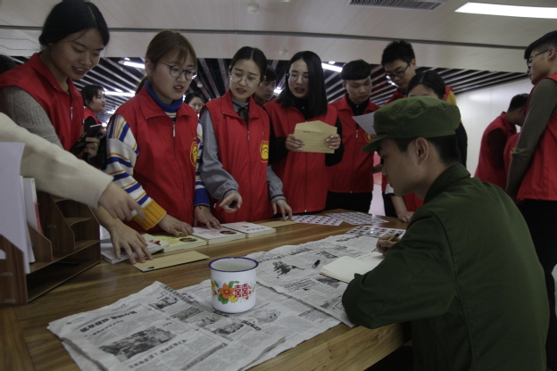 在讲解员的带领下,与会领导、老师和志愿者们参观了“雷锋纪念馆”。在“又见雷锋”情景展区,王金文翻看了同学们手工制作的雷锋年代的邮票、信封,雷锋精神学习读本等;在“光荣的一生”、“永恒的精神”、“永远的传承”三大专题图片展区,与会领导、老师和同学们重温了雷锋平凡又伟大的一生;纪念馆还开通了“雷锋影院”播放了“雷锋的微笑”主题电影。整个纪念馆以图文并茂的形式、线上线下相结合的方式全面展现了雷锋精神新的内涵,倡导广大青年学生学习雷锋好榜样,为学院的志愿服务增光添彩。