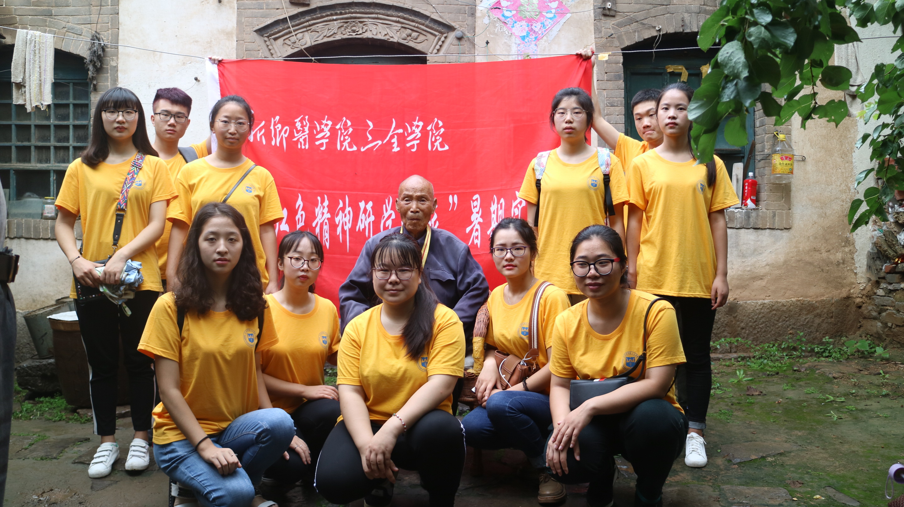 7月4日上午,新密市尖山乡田种湾村中原豫西抗日纪念园不时传来阵阵热烈的掌声。原来,村里参加过保家卫国的抗战老兵给来自于新乡医学院三全学院暑期社会实践红色基因团队的全体学生上一场特殊的党课,纪念建国70周年。