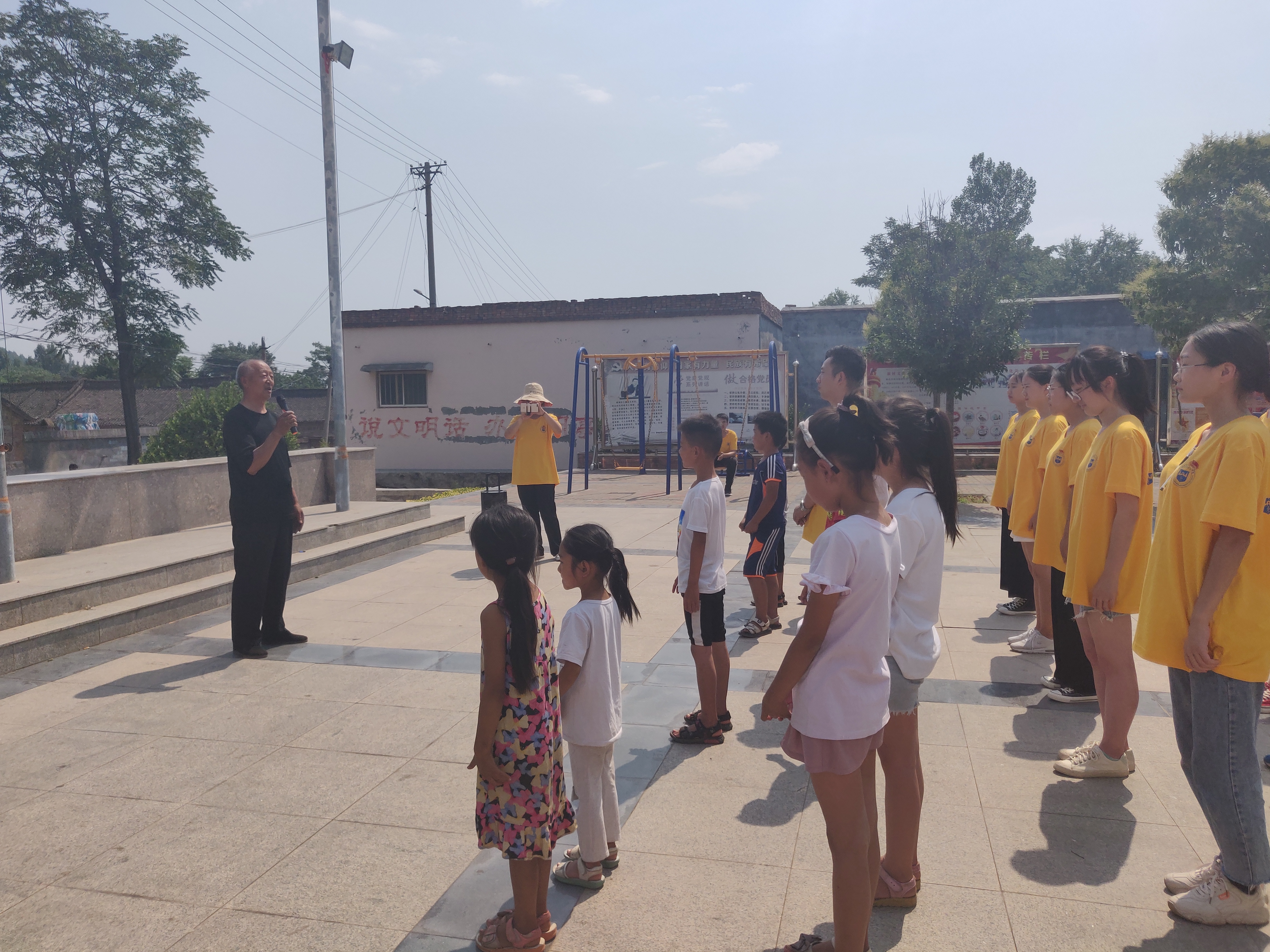在此次活动中,我们邀请了村里的老党员和少先队成员参加升旗仪式并邀请老党员在国旗下发表演讲。随着神圣庄严的国歌响起,全体成员立正,少先队员行队礼,其他人员行注目礼,所有人注视着五星红旗冉冉升起。升旗仪式结束后,老党员上台讲话,他说:“非常感谢三全学院崇德书院的学生们能够来到我们新村进行暑期实践活动,医疗健康服务,七彩课堂教育,让我们村民十分感动,我从这一点上看到了当代青年大学生的态度,我们对你们非常满意,希望你们能继续保持这份活力与激情,向我们的习总书记学习,不忘初心,牢记使命!”