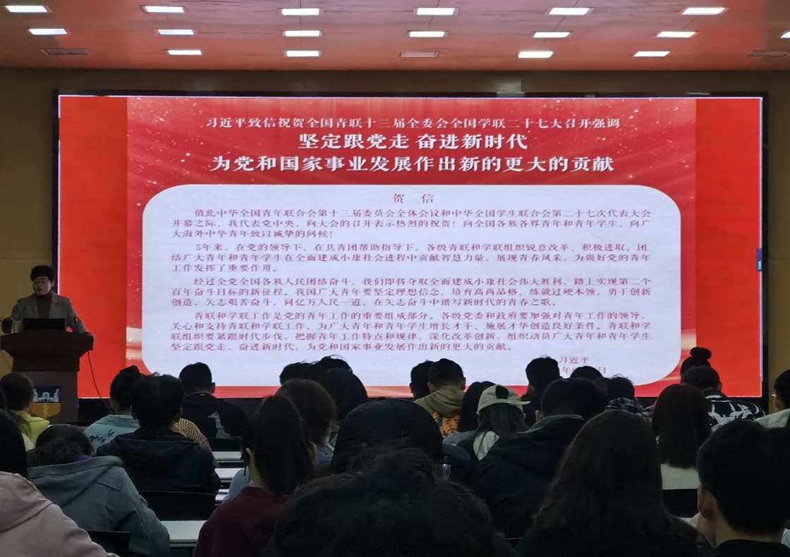 会上,团委书记马素娟围绕学习贯彻习近平总书记致全国学联大会贺信精神、党中央致词精神等方面内容为到场师生进行了深入阐述,重点梳理了高校学生组织发展的关键点和着力点。