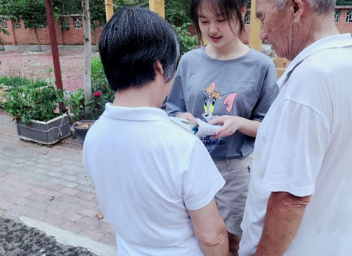 团队成员带着各自准备好的标本向周围群众介绍其药用价值。其中一位年过古稀的老爷爷讲述了他在生产队时,熬制避暑汤和挖草药的经历。团队成员还向周边的农民普及了药用植物的种植方法及注意事项,普及当前中医药发展的巨大潜力和优势,种植药用植物可以加快脱贫致富的脚步。