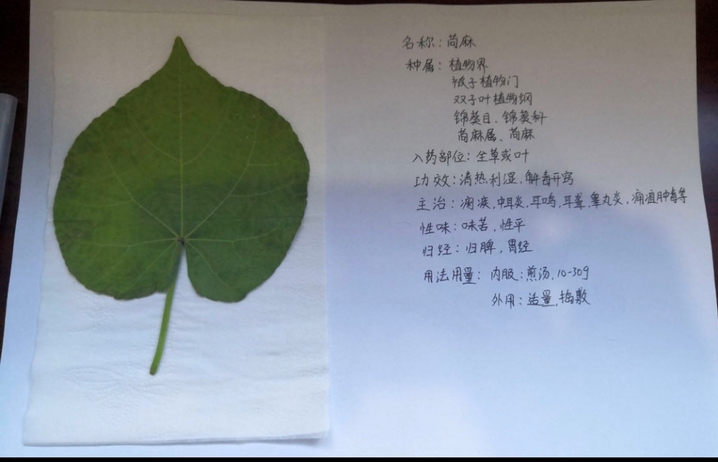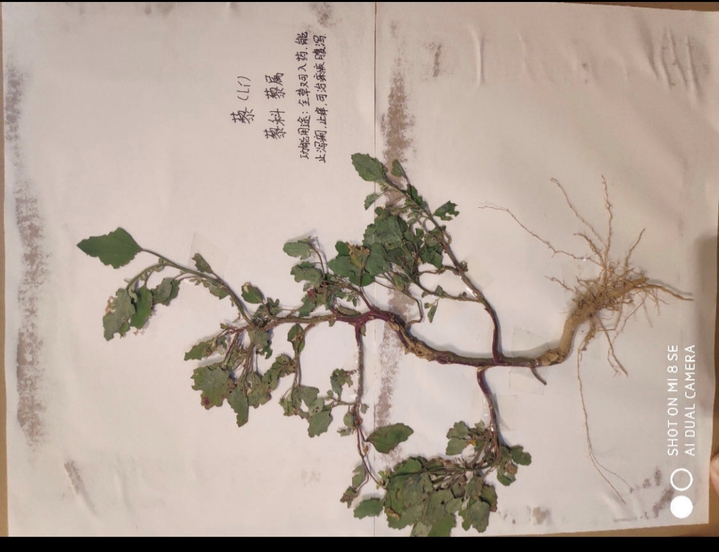 视频结束后,团队成员将自己采集到的药用植物标本用吸水纸吸水,书本压紧的办法进行了简易制备,在保证标本干燥且不变色的前提下,贴至台纸上,手写标注其名称、种属、功效、主治病症、归经等信息。