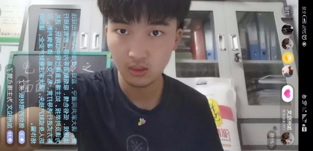 8月11号上午九点,团队两组成员分别准时在抖音和QQ直播平台进行网络直播带货,吸引了上百人在线观看,在两个多小时的直播中,不断有网友互动、下单。其中,成员郭家诚和张嘉琪负责直播,张晴晴和王浩源负责登记买家信息,四人分工明确,有条不紊地进行直播工作。