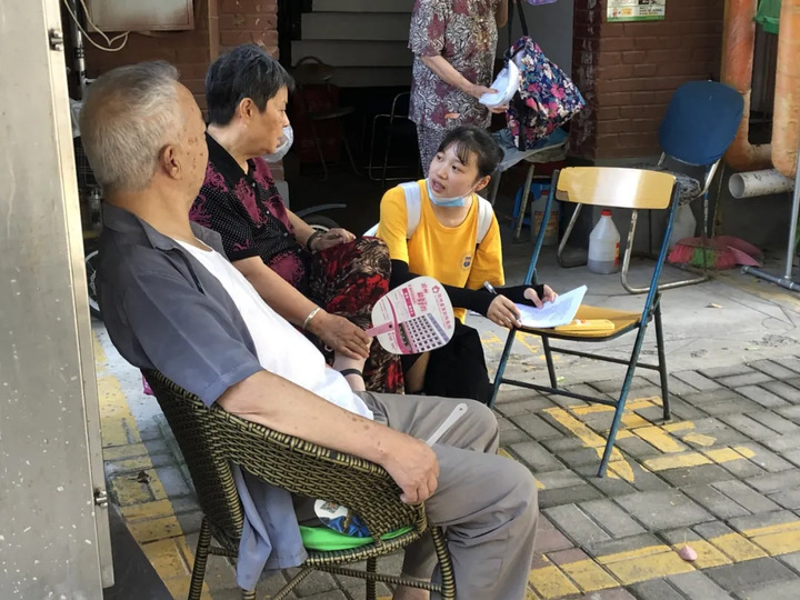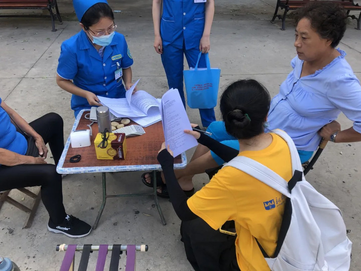 揭牌仪式后,在北下街社区卫生服务中心入户随访医生的带领下,“疫情防控 医药医养”调研团队一行12人深入周边小区进行了“疫情防控背景下社区老年人中医药健康养老服务现状”主题调研。全体队员佩戴口罩,与受访对象保持安全距离,耐心的为老年人讲解问卷内容,并为老年人普及疫情防控背景下中医药健康保健的相关知识,共发放调查问卷200余份。