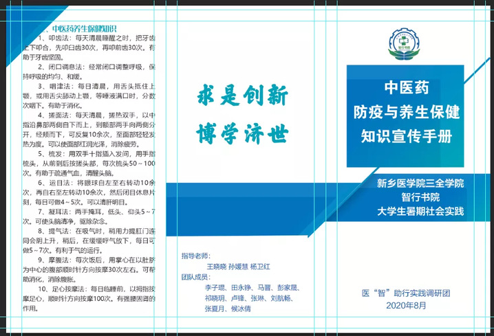 目前,我国老龄化问题日益严重,老年人养老服务等问题逐渐凸显。而具有悠久历史的中医药具有预防、医疗及保健养生等功能,十分契合老年人增强体质及预防老年病的需求,对于提升老年人的生活质量具有积极的意义。由新乡医学院三全学院智行书院的10名队员组成的“疫情防控,医药医养”调研团队,现赴郑州开展疫情防控背景下的中老年中医药健康知识宣讲,研究将防范新冠病毒肺炎疫情与中医药健康管理服务结合的新模式。