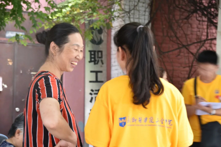 8月11日在陇海马路社区吕艳辉主任的带领下,团队一行人来到郑州市紫荆社区党群服务中心。在进行分组后,其中一组队员进入社区服务中心进行中医药养生知识和疫情下中医药防疫知识的宣讲;另一组进入社区随机发放《社区老年人中医药健康养老服务》调查问卷。在宣讲的过程中,队员张琳、彭家晟为老年人讲解了中医药养生的有关小知识,按揉穴位、艾叶烟熏、饮食调控等。老人们认真的聆听学习。各位队员在宣讲结束后耐心向老人们询问有关问卷的问题。在随机调查的过程中,队员们微笑着向爷爷奶奶们讲解问卷内容。其中队员张夏月在发放问卷过程中向老年人现场讲解团队制作的《中医药防疫与养生保健知识手册》的养生保健知识。例如:叩齿法、运目法、凝耳法、摩腹法等。