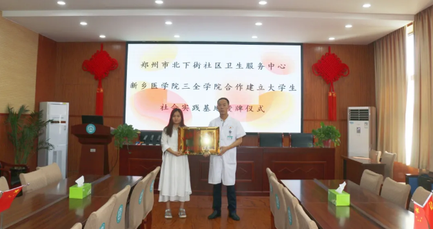 红旗融媒:(魏健周更喜)2020年8月13日下午,新乡医学院三全学院暑期实践指导老师杨卫红带领师生,赴北下街社区卫生服务中心开展社区医疗实践调研并举行“校外暑期社会实践基地”挂牌仪式。