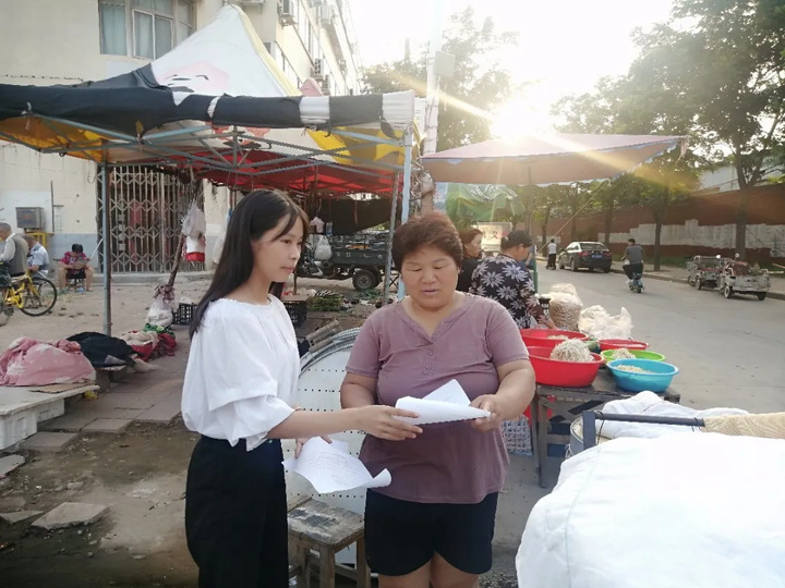 8月16日,团队成员杨莹莹站在分类垃圾桶旁向居民宣讲如何处理生活垃圾,并协助居民正确投放垃圾。8月17日团队成员燕婧文通过制作“文明餐桌、节俭养德”的宣传海报,形象生动地向居民普及“光盘”理念,让合理用餐,不剩菜、不剩饭成为居民的自觉行为。与此同时,团队成员侯怡彤在社区附近随机采访交警,得出结论,多数居民目前选用步行、公交、自行车等绿色出行方式,这也从侧面反映了居民已经认识到绿色出行的好处。