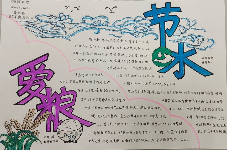 活动当天,同学们在志愿者的组织下,记录个人信息,积极配合,并上交以“节约N次方, 校园更健康”为内容的手抄报,相关负责人对手抄报进行认真的检查与保存,并对参与成员进行信息保存。经过四天的时间,该活动顺利完成。从始至终,同学们展现出了极大的积极性,对志愿服务工作人员工作十分配合,并且充分意识到此次活动的意义。节约是中华民族的传统美德,节约要从个人做起,从平时的一点一滴做起。