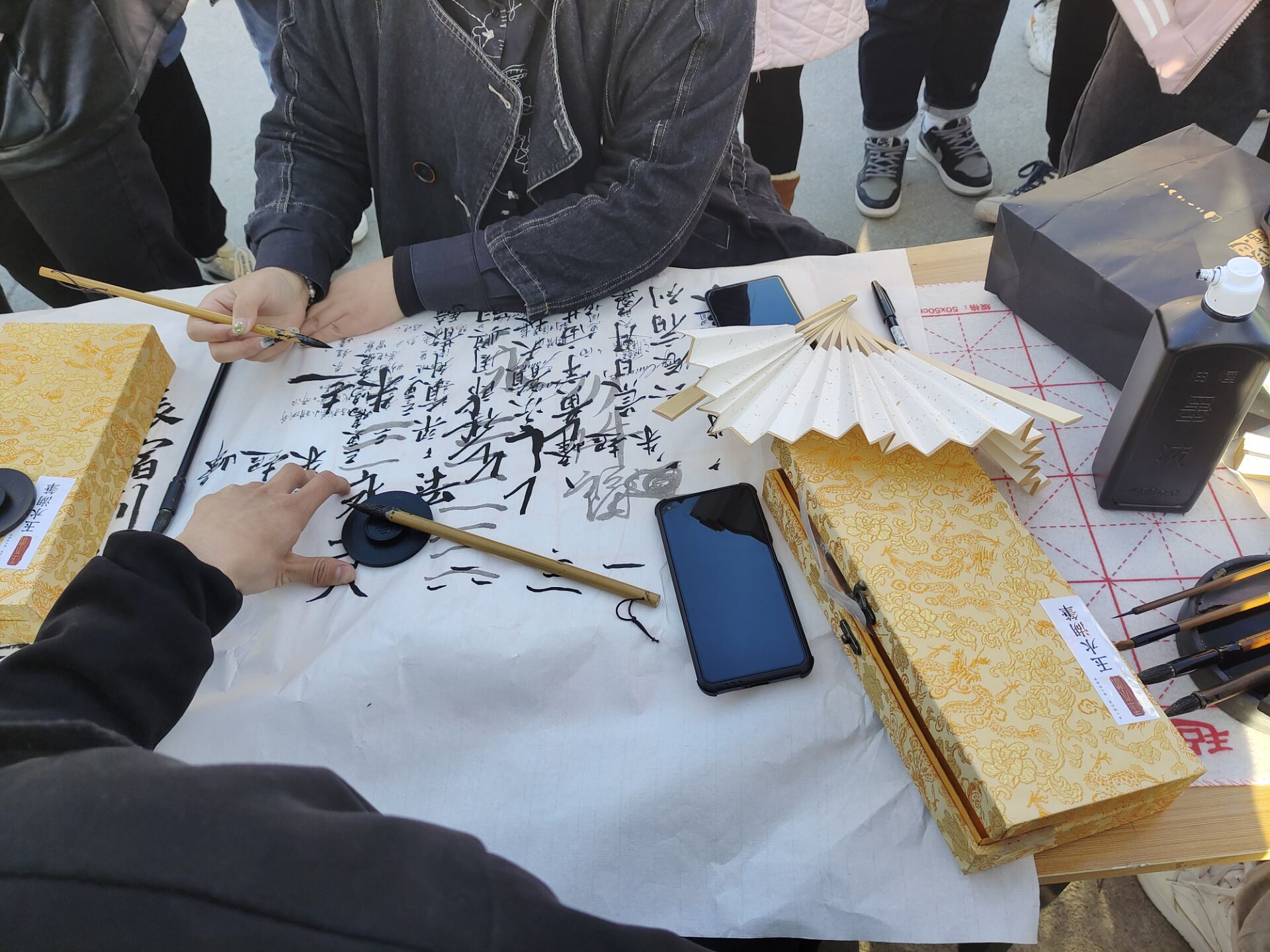 活动伊始,书画协会会长组织同学们练习书法,通过运笔、控笔等练习使同学们对毛笔有了一定的了解,随后组织同学们在宣纸上进行练习创作。一个小时后,四位负责人开始指导同学们将感兴趣的内容写至扇面留念,随后向同学们讲解书法的相关的历史渊源及历史发展,依次增加对书法的了解程度。本课程着重从书画练习入手,通过对同学们的指导和相互交流,使同学们对于书法的理解更为深入。以文墨的形式去展现呈现艺术,能够推动中华优秀传统文化创造性转化与创新性发展,传递向上向善的主流价值。