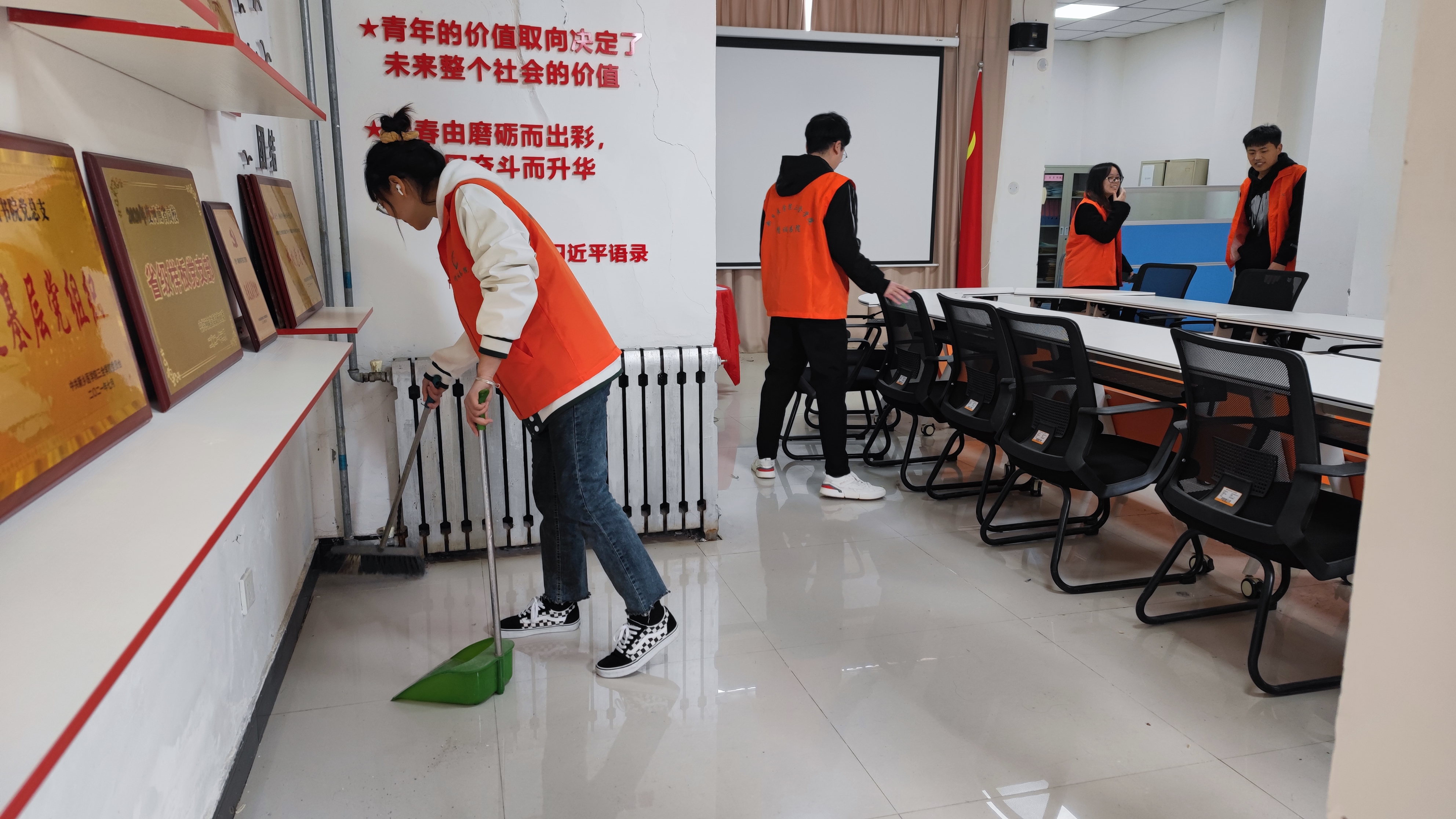 然后,各队伍成员分工明确,互帮互助,志愿者们精神饱满,干的热火朝天,有的志愿者拿工具清扫园区的落叶,有的则将会议室的桌子进行了清洁,辛勤的志愿者们将书院的每一个角落都打扫的干干净净,使整个书院焕然一新,充分发扬了不怕脏,不怕累的雷锋精神。
