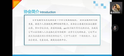 本社团是刚开设的以剪辑视频,录课和制作PPT为主的社团,可以让会员们学到更多的内容。本次活动让会员们了解了社团的主要任务,让大家都更细致的了解社团以及社团各个会员,这次活动主要是为丰富同学们的业余生活,增进同学之间的交流,让大家充分了解本协会人员及其具体工作内容,大学生教育信息化协会特举办本次活动“开学有感,协会解惑”。希望大家在以后的工作中互相帮助,互相学习来提高自己的能力。