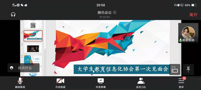 由大学生教育信息化协会举办的以线上腾讯会议为主要形式的活动已经圆满结束,该活动为面向本社团成员的社团内部活动,目的是使得社团成员充分了解本社团的具体工作内容,使得成员之间相互熟络,增进友谊,提高团队意识,提高各成员心理素质,增强社团凝聚力。此次活动首先是主持人致欢迎辞,并介绍协会骨干,说明此次活动的意义和目的;然后副会长播放PPT(简单介绍协会及协会骨干)和介绍社团的小视频;以及观看学习剪辑视频,活跃气氛,会员必须全部打开视频,并进行自我介绍,口头介绍或以小视频形式介绍,可自由选择;再由会长组织会员们相互关注抖音,建立联系,增进交流;增加我们的社交能力,方便以后的工作,副会长讲话,并陈述协会未来活动方向及发展,鼓舞士气;最后由会长进行活动总结,总结本次活动;主持人结束会议。