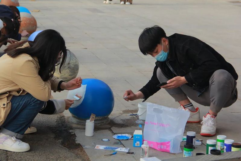 该活动创新载体,主要以绘画涂鸦的方式展开,志愿者们借助于校园内随处可见的井盖和水泥隔离墩,以节约用水为主题元素,花式节水,“井”上添“画”,让各种图案跃然“石”上,用艺术化的方式在大学校园里吸引更多师生关注,同时也让更多师生参与到活动中来,树立起珍惜水、保护水、节约水的责任意识。从设计、选择草图样本,再到勾勒图案、填充颜色,志愿者们涂鸦绘画热情认真、积极向上,通过明快的色彩、地球、水龙头、水滴、霖霖吉祥物等创意彩绘,为井盖和水泥隔离墩赋予了靓丽外表,吸引众多过往师生驻足观看,也赢得了他们的点赞。