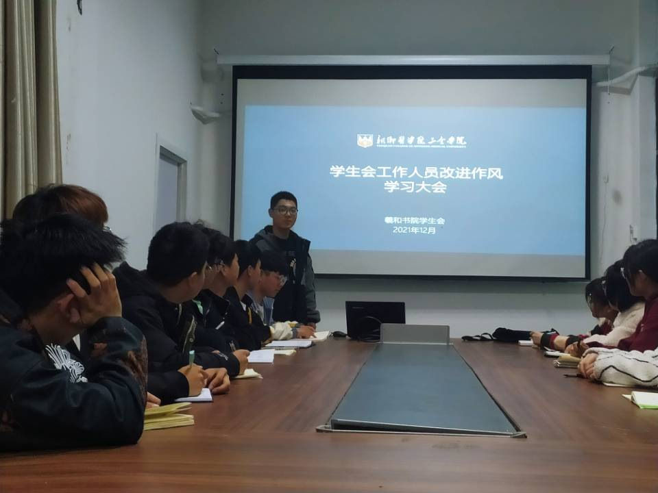 学生会是为同学服务作为主要目的组织,应该不断的发扬学生良好品质,引领同学们向着更加光明的道路前进,代表着广大学生的利益,考虑学生的发展需求,维护学生的权益,始终坚持为广大学生服务,学生会从广大学生中产生,又走向广大学生中去,学生会的工作规则和工作作风直接关系到学生会的发展和为学生服务效率保证,为了更好促进学生会的向好,向强发展,学生会成员在学校老师的领导下于2021年3月份开展了以“学生会工作人员改进作风学习大会”为主题的学习大会,旨在引领学生会工作的正风气,建立起更加坚定的学生会工作理念和信仰,从而更好的为学生服务,更好的发展学生会组织,更好的促进学生会在学生与学校老师之间的积极作用,让广大同学切实感受到学生会工作带来的日常学习生活上的便捷。