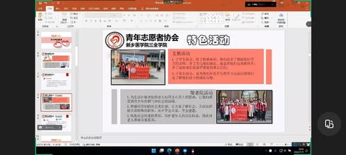 最后,活动在一个志愿者视频中圆满结束,青年志愿者协会携手社团联合会对大家给予了诚意的祝福,会议负责人表示:希望大家都可以积极投身于志愿者服务中,为自己,为他人,为社会贡献自己的爱心,献出自己的热度。