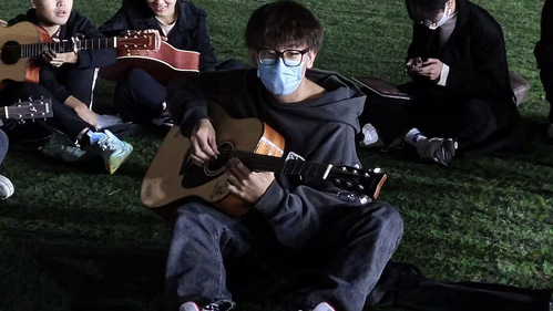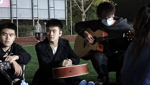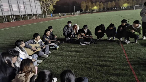 本次活动在风雨操场进行,活动时长为两个小时。活动开始前由组织部的工作人员安排参加活动的同学进行签到。活动正式开始,首先是带吉他的同学表演节目,完美开场,同学们拍手叫好,现场氛围活跃。接下来进入到活动的游戏环节,张申一同学进行演奏,当歌曲暂停时拿到盒子的同学将为大家表演才艺。起初大家不太好意思,几轮游戏下来,大家都逐渐熟悉了起来,也大方起来,笑声响彻操场。最后大家一起伴着吉他唱歌,会弹吉他的同学更是主动上手教那些想学吉他的同学简单的弹奏技巧,详细的讲解与美妙的演奏使得大家心情愉悦,脱离烦恼并交到了新伙伴。
