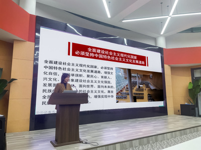 孙媛慧从党的二十大报告的习近平总书记寄语青年开篇,围绕三个务必、十年来三件大事 跳出历史周期率的第二个答案、归根到底是两个“行”、中国式现代化的五个特色、党的中心任务等8个方面的内容,以青年视角、青年话语,对党的二十大报告中的新观点、新论断、新思想进行了详细解读,引导学生充分感受党和国家对青年所寄予的希望和嘱托,坚定了同学们以习近平新时代中国特色社会主义思想武装自己的决心。