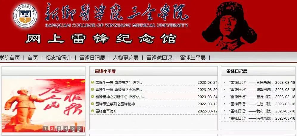 广大青年学生将“雷锋精神”融入日常学习和生活中,举办雷锋精神小课堂,开展线上雷锋话题写作,极大的激发了同学们心中的雷锋情怀,思考担当的责任使命。同时,志愿者们在团委官网建设“网上雷锋纪念馆”,宣传雷锋精神。随着“网上雷锋纪念馆”的开展,雷锋月活动进入了高潮阶段。“网上雷锋纪念馆”由雷锋生平展、学习雷锋好榜样视频展、雷锋日记展、雷锋微团课、人物事迹展等栏目组成,通过文字、图片、音视频等手段再现了这位共产主义战士平凡而伟大的一生。激发共青团员爱党爱国爱社会主义的巨大热情,让红色雷锋精神的旗帜永远飘扬。