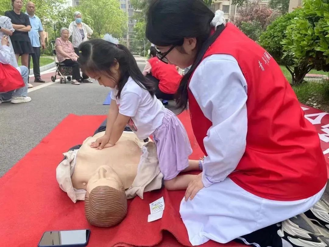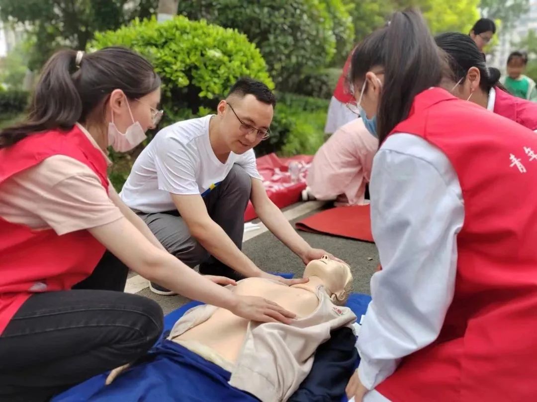 讲解完成后,成员们引导居民们家亲身体验急救的过程,了解急救的基本流程和技巧,一对一的解答了参与培训活动的社区居民的各种疑问并进行手把手指导。同时志愿者们还将制作宣传海报和宣传手册,向公众传递急救知识,让更多人了解急救的重要性和基本技能。