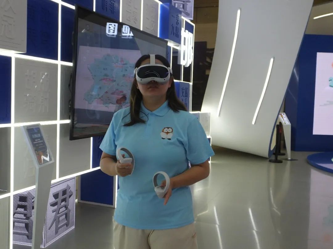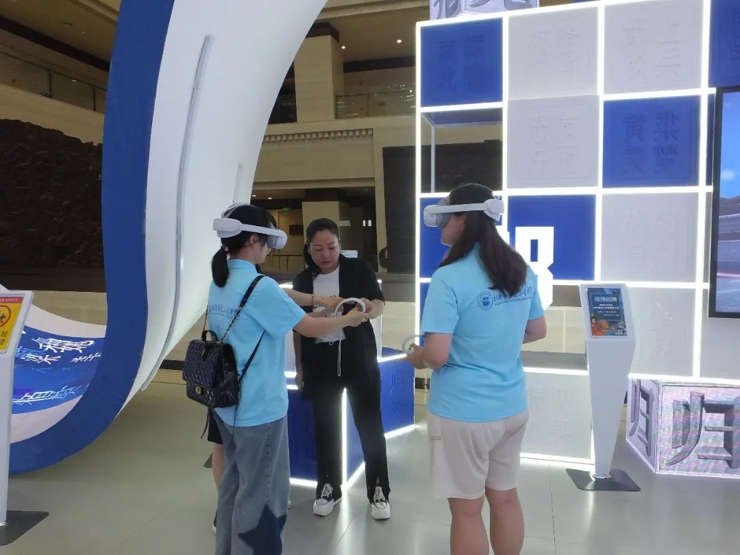 7月17日,我们来到邯郸市博物馆成语展厅,近距离感受中国成语的无限魅力。进入博物馆大厅,首先映入眼帘的是“磁山之光”“胡服骑射”“建安风骨”三幅锻铜壁画,集中反映了邯郸历史文化的三个重要时期,是目前国内室内锻铜壁画之最。在讲解员的引导下,实践团成员来到二楼,展厅采用科技与历史结合的方式,将一个个成语和那些被尘封于岁月的成语故事传播给游客。游客可以通过穿戴VR眼镜,与古代圣贤跨时空对话。“在参观的过程中,我深深感受到古人的智慧。成语言简意赅,但却蕴含着丰富的人生哲理。作为大学生,我们应更好地承担起保护历史、弘扬中华文明的责任和义务,让中华文化继续发扬光大。”团队成员王梓衡感说道。