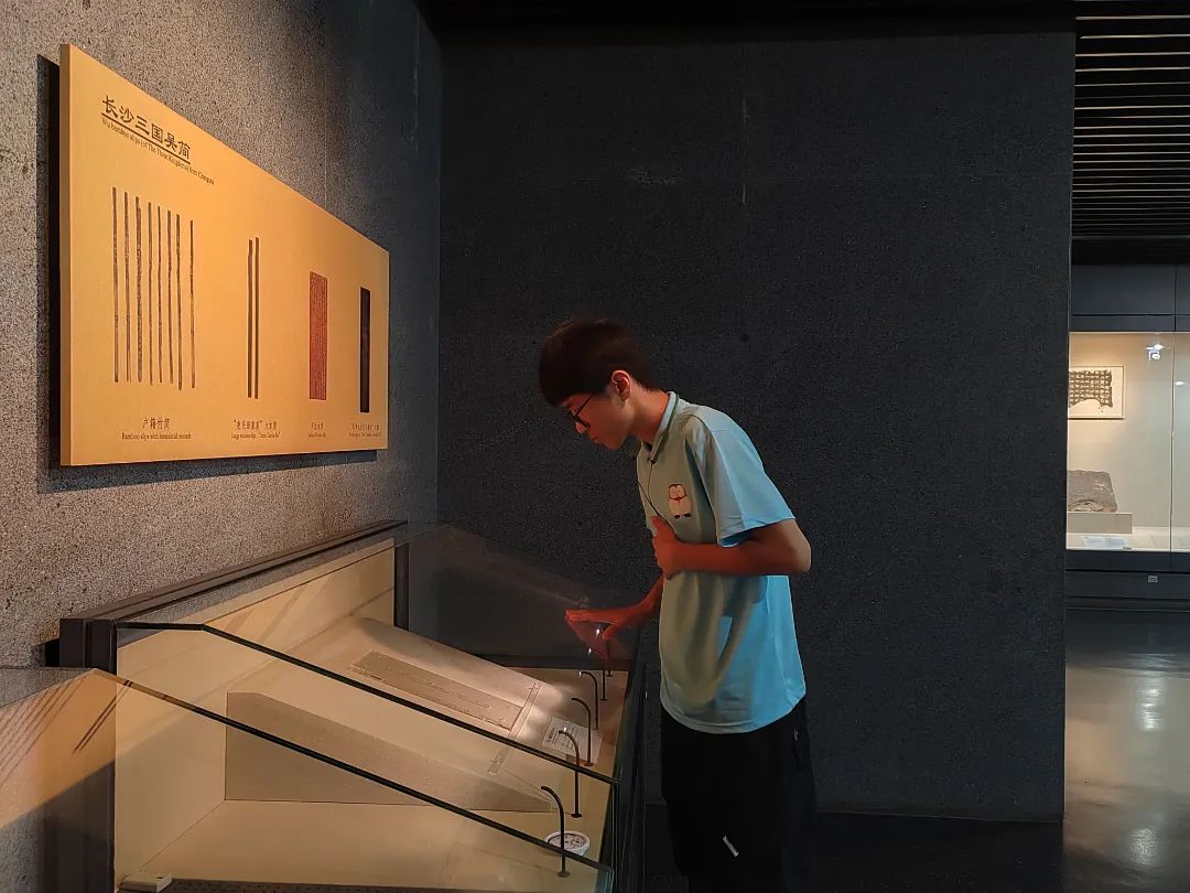 7月13日,团队成员前往甲骨文的故乡——安阳市中国文字博物馆参观学习甲骨文相关知识。实践团成员跟随讲解员对展馆内的甲骨文进行参观,体会每一个文字所蕴含的意义,与古人进行穿越数千年历史的精神互动。博物馆墙上的匾牌详细地介绍了我国文字的发展历史,展柜里龟甲上的古老文字,一笔一画,尽显华夏文明之厚重神采。甲骨文最初是商王占卜所用,内容非常丰富,可以从中看到商朝的政治、军事、农业、畜牧、交通、社会形态等。团队成员王政力说:“走在博物馆的长廊里,更像是走在穿越中华数千年历史的大地上。可以从文字中窥探出那个朝代人们的生活状况。日出而作、打猎耕种;看他们与自然搏斗,与环境争锋……那一刻,博物馆作为文明的殿堂,连接了过去与现在。”