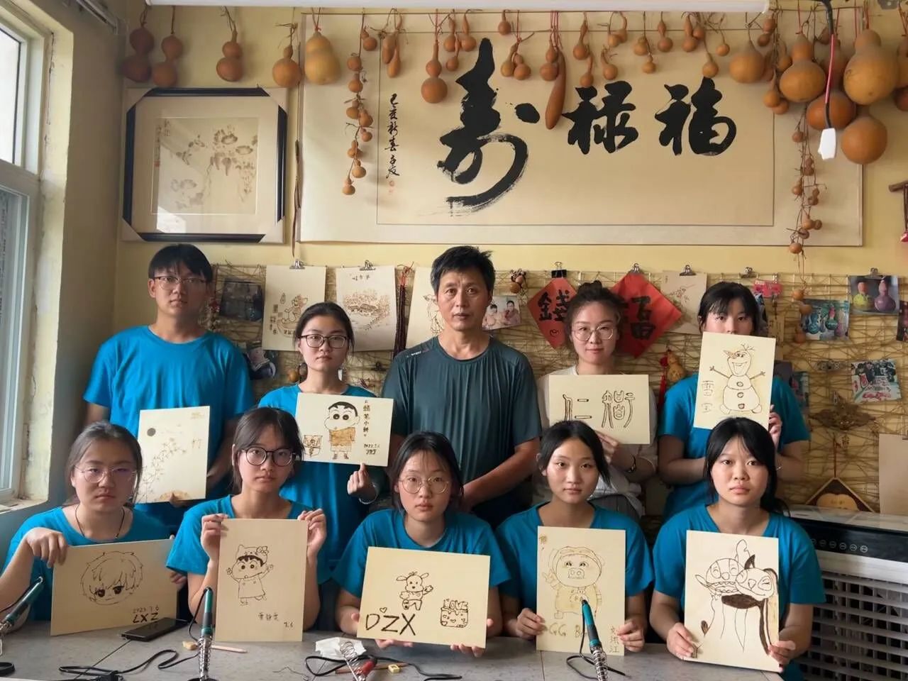 7月8日,新乡医学院三全学院“智传薪火”非遗文化学习团赶赴河南省新乡市牧野区,开启“争做时代传承人”主题社会实践。当知道家住新乡市牧野区的非遗烙画技艺人张丙文将为团队队员们上了这样一节别开生面的“葫芦烙画”体验课,队员们都兴奋不已,迫不及待地想要动手试一试了。