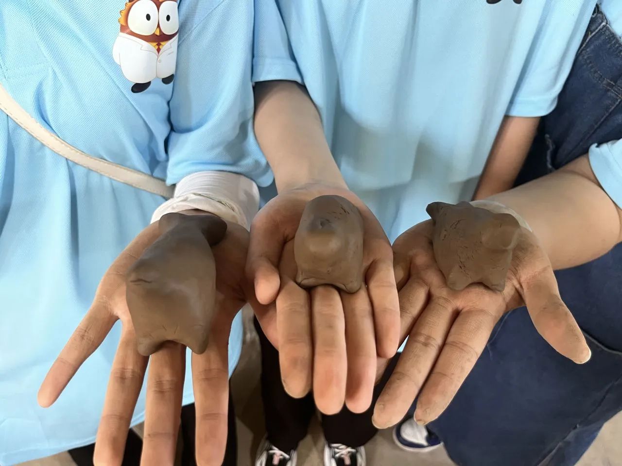 紧接着来到工作室,在宋书记的教导下,队员们也当了一回临时的非遗传承人,跟着书记的方法步骤,照葫芦画瓢,队员们也捏塑出属于自己的“泥咕咕”。