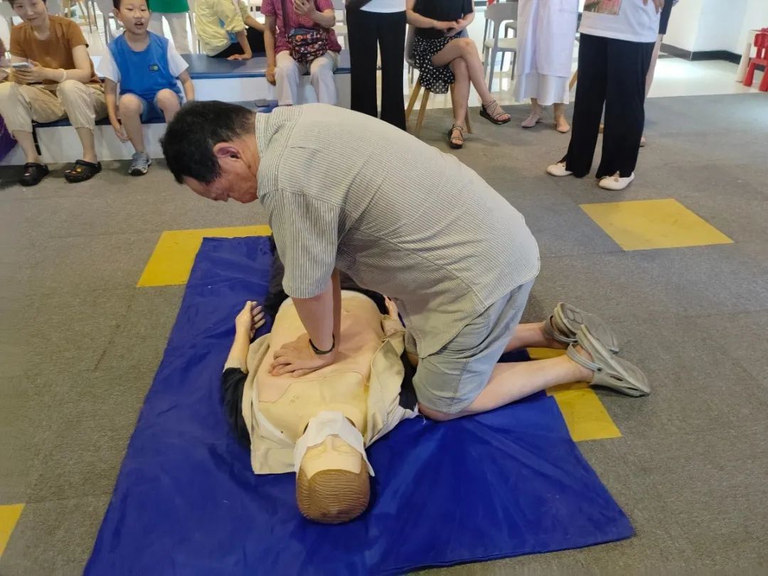 团队老师对海姆立克急救法就不同人群,幼儿、儿童、成人分别进行讲解,最大限度在医生和救护人员到来之前协助挽救生命等作了详细讲解,让居民们现场亲自体验,熟练掌握怎么应急处理、如何学会自救和急救。在场的居民朋友们都积极地参与到实际操作中,掌握手法技巧,现场气氛热烈。