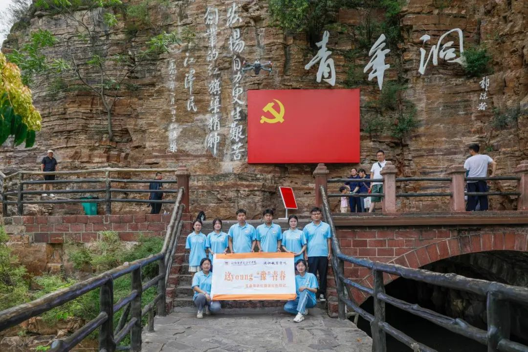 游学团队来到红旗渠红色教育基地风景区。首先,游学团来到渠上文旅,由渠上文旅负责人吴东泽为大家做以“青春寻访红旗渠,感悟红色印记”为主体的先导讲座,以导促学,以践促学。随后,游学团在红旗渠纪念馆参观学习,从一张张珍贵的历史图文资料、一件件锈迹斑斑的文物到一个个还原工程全貌的沙盘模型,游学团成员仔细学习、认真记录,感受当年林州人民为改变恶劣的缺水条件,干部身先士卒,群众团结一心,手拿凿具开山修渠,不畏艰难、艰苦奋斗的精神。最后,游学团成员在馆内进行了诗歌朗诵,以“诵”的形式来表达对红旗渠建设者的敬畏之情,同时也深刻感悟到习近平总书记视察红旗渠时重要讲话精神的深刻内涵。