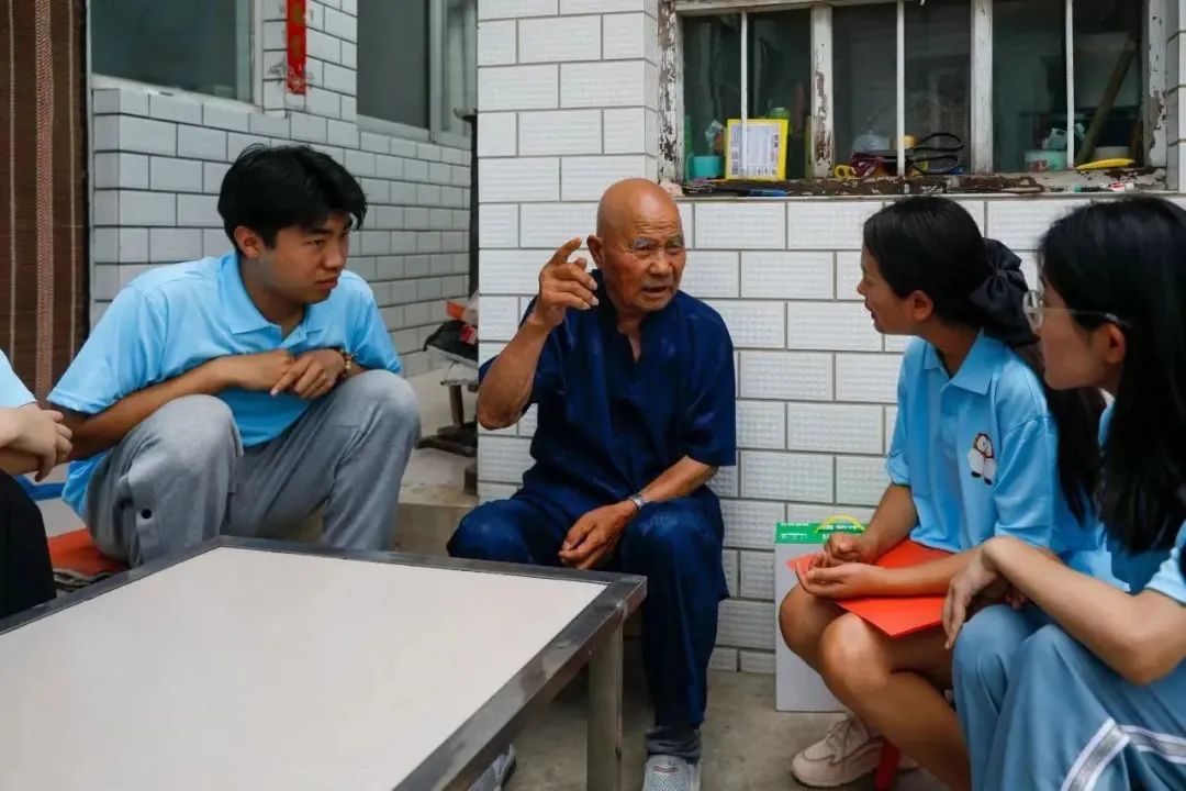 游学团出发前往姚村镇寻访红旗渠建设者,经过一路探寻来到姚村镇翟底村,找到了当年红旗渠建设者常计林老人,常老今年已经90岁高龄,但给成员们讲到当年修渠故事时自豪不已、慷慨激昂。常老从修渠的背景、修渠故事及修渠之难娓娓道来,大旱、连旱、凶旱......小米加野菜、甚至吃树皮,面对这样的困难境遇,空有一身劲的他在1958年加入到修渠队伍中,这一修就是10年,10年间他过家门而不入,吃住在石缝。修渠过程中最难的就是所有的修建全部都是靠人工,所有的修渠用料只通过人工搬运和毛驴运送,修渠过程异常艰辛。讲到在修渠中“老炮眼”时,常老多次哽咽讲不下去,因为他亲眼见到了炸药爆破中被炸的血肉模糊的身躯。当团队成员向常老表示都是00后时,他不禁感慨到,他们都生在了好时代,以前的苦日子已不复再来,也希望孩子们都能成为国家栋梁之才。最后,常老表示游学团来的巧,当天恰逢自己90岁生日,回忆和自己一起修渠的杨贵、任羊成等都已离世,心中难免伤感,但是红旗渠精神将永垂不朽。