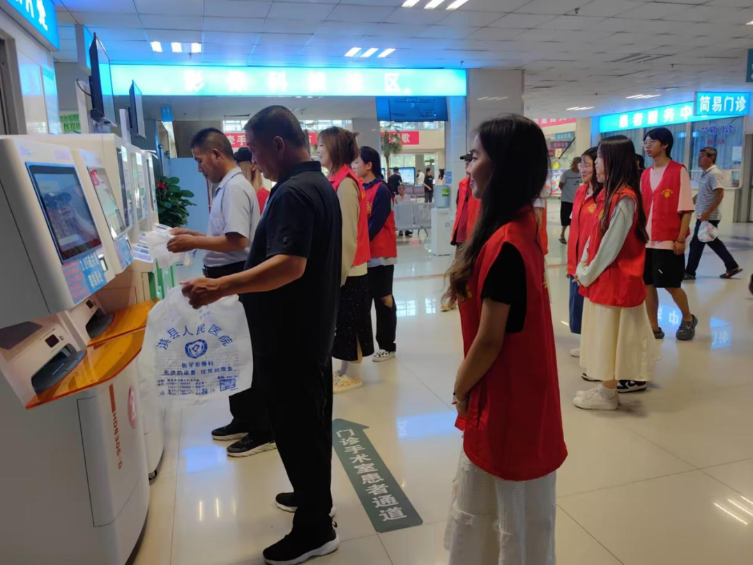 7月10日—11日,团队负责人关子涵带领团队成员跟随护士共同学习医院相关规章制度,了解各部门基本工作,熟悉相应工作流程,为后续志愿服务工作的顺利开展做了充足准备。7月12日—13日,团队成员帮助病患进行排队就诊,熟悉住院流程,自主使用自助缴费机器等一系列志愿活动,帮助病人快速就诊,便捷就诊。7月14日—16日,团队成员深入病房,协助护士收集病人信息,了解科室患者病情,并跟随值班护士进入病房查房,学习如何与患者交流沟通,给予患者积极的心理暗示。7月17日,实践团在医院中开展健康宣讲活动,帮助群众树立健康意识,了解疾病的发生与传播,养成健康的生活方式,提高自主就医意识。最后,团队成员共同对此次实践活动进行了回顾总结,分享了自己的感悟。