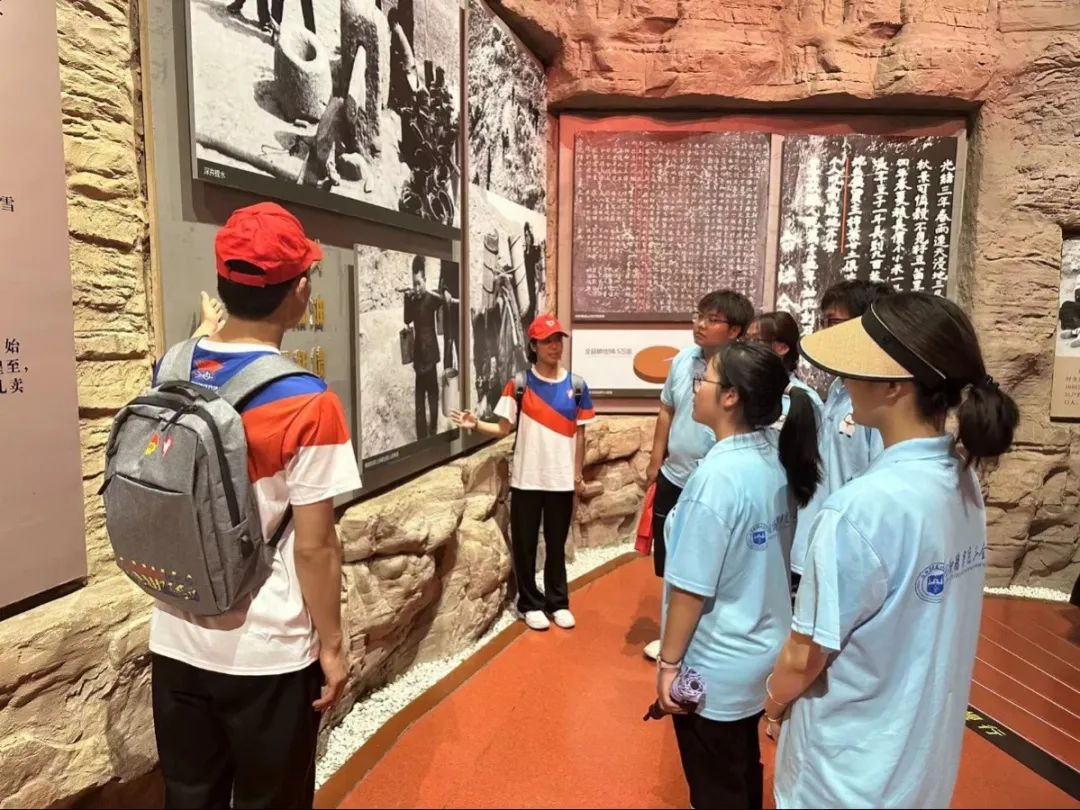 下午,团队成员来到红旗渠纪念馆进行参观学习。走进纪念馆内,一幅幅珍贵的历史照片、一个个沙盘模型、当年修渠工人们用过的提灯、开凿工具,再现了红旗渠精神形成和发展的全过程。“青”风展红旗宣讲队成员蔡沛霖、王军权自愿化身讲解员,为大家生动讲述修渠故事,带领大家身临其境地感受林州人民建造人工天河时不畏艰险,顽强拼搏,艰苦奋斗的那段峥嵘岁月,让团队成员感悟到没有十万林县人民十年的浴血奋战,就没有今天日新月异的林州。宣讲队成员们通过研学实践,亲身感受到了红旗渠的宏伟浩大,深刻领悟了“自力更生、艰苦创业、团结协作、无私奉献”的红旗渠精神,同时也为之后的宣讲活动积累了更多的理论知识。