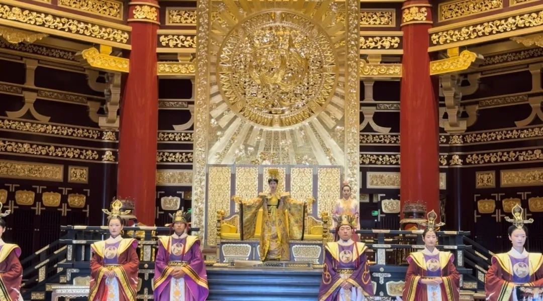告别古墓博物馆后,团队成员参观了武则天执政的皇宫正殿—明堂,并且观看了明堂内武则天登基的表演。为了更加真实的体验,团队成员参与到表演之中,作为“武则天”登上皇位,来体验朝臣的跪拜,万人之上的孤独感。“坐在那个位置起初是兴奋的,随之而来的则是一种责任感。正如当下的社会,每个人都有属于自己的责任,需要为此付诸于努力与奋斗。”团队成员赵一栋颇有感触的说。