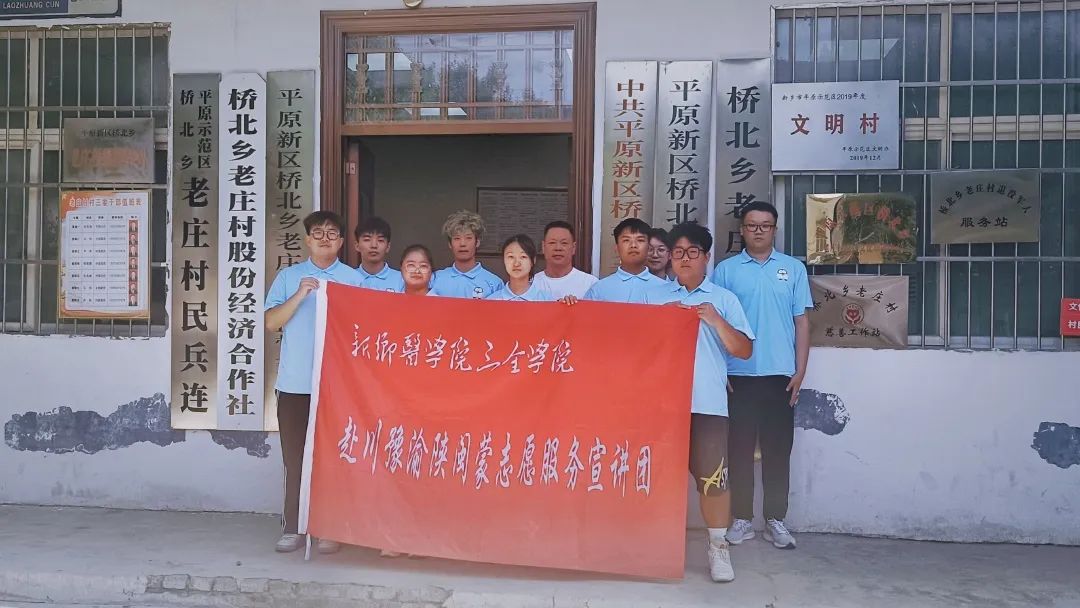 为提升医学生职业技能,切实了解基础疾病在基层中的实际体现,并加强大学生对当下民情实地考量,2023年7月13日,新乡医学院三全学院赴川豫渝陕闽蒙志愿服务宣讲团前往河南省新乡市原阳县老庄村开展了“‘豫’你医起,共筑健康”的暑期社会实践活动。