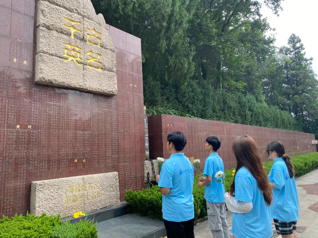 2019年9月,习近平总书记在河南考察调研时指出,“鄂豫皖苏区根据地是我们党的重要建党基地,焦裕禄精神、红旗渠精神、大别山精神等都是我们党的宝贵精神财富。”15日上午,实践团来到鄂豫皖苏区首府烈士陵园,这里安葬着近百位革命烈士,纪念着鄂豫皖苏区13万多名革命烈士。在烈士纪念碑前,团队成员集体献花默哀,共同缅怀革命先烈的英雄业绩,感受当年先烈们为国英勇奋战的革命精神,缅怀在革命斗争中牺牲的革命先烈们。