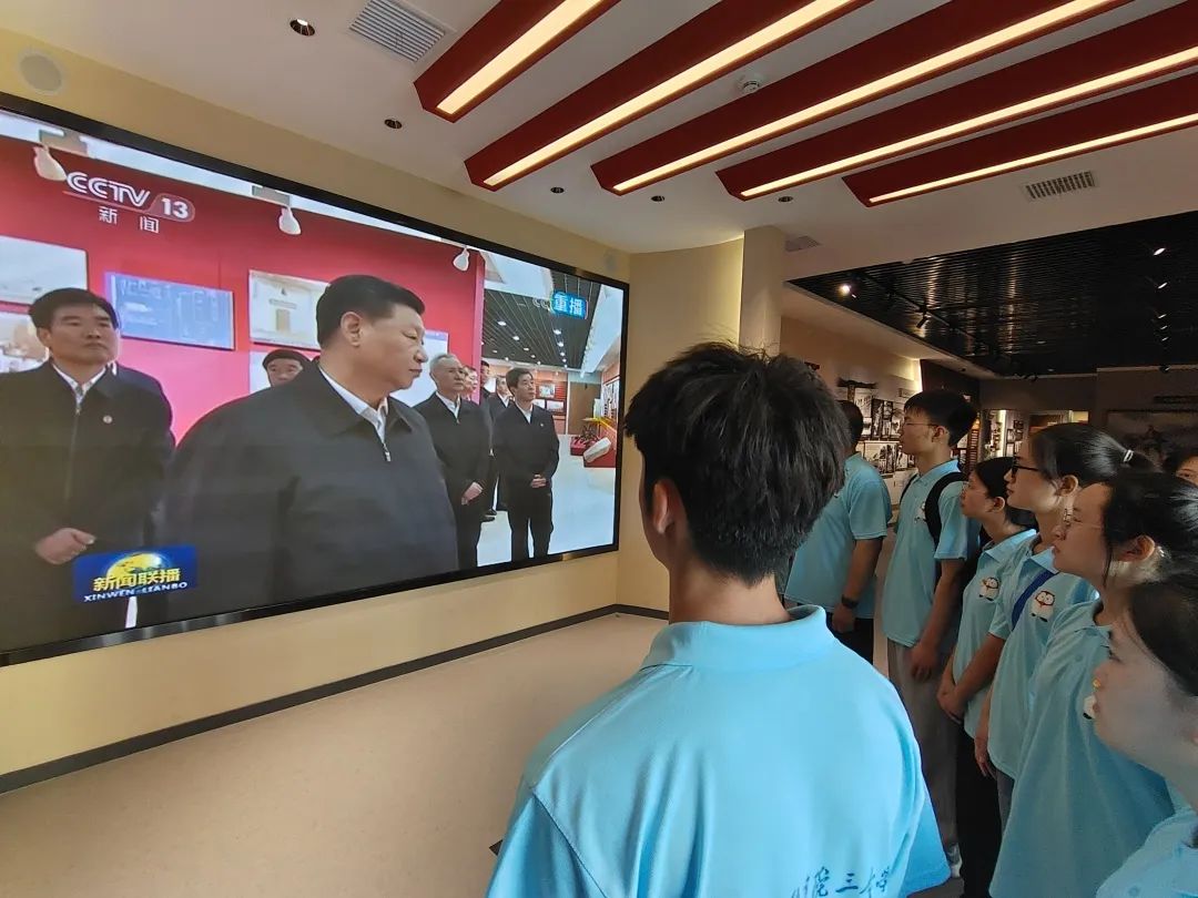 追随主席的足迹继续前进,实践团一行到达鄂豫皖苏区首府革命博物馆,进行了揭牌仪式,副馆长李森上台致辞,向团队队员们们展开了一节别开生面的微党课,激励队员们坚定不移听党话、跟党走,成为敢想敢为善作善为的新时代青年。随后,实践队员在讲解员的带领下进入馆区进行学习参观,队员们经过此次参观学习,回望党的百年光辉历程,深刻领会实践了二十大中习总书记指出的“年轻一代要继承和发扬吃苦精神、自力更生、艰苦奋斗的精神、摒弃骄娇二字,像我们的父辈一样把青春热血镌刻在历史的丰碑上”。