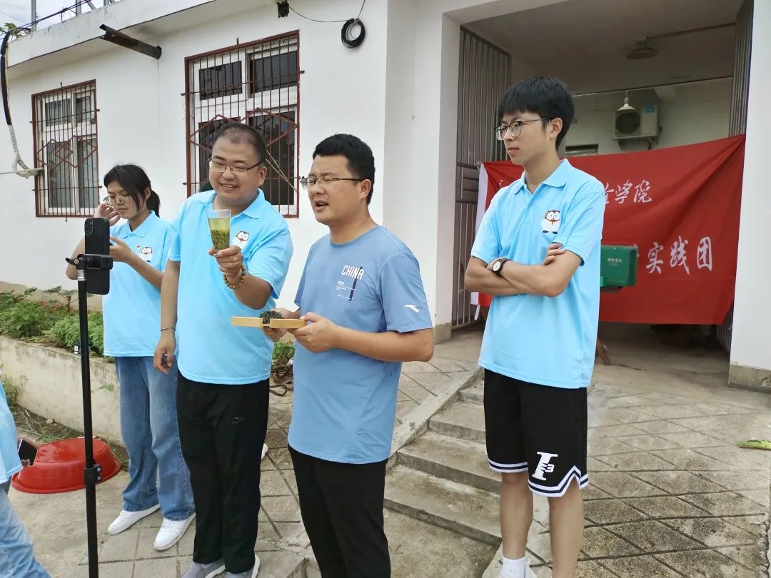 茶山采土,深入乡村。在信阳新县陈店山背茶场,实践团成员利用专业采土工具管形土钻进行采样收集,并对土样进行物理性状分析。在采土过程中,实践团成员还虚心地通过视频电话的方式,向河南科技学院土壤专家陈翠玲教授请教,陈教授就队员们的问题做出了专业的解答。采茶结束后,实践团开启了直播,助力茶农,贡献力量。同学们响亮的声音回荡在直播间内。