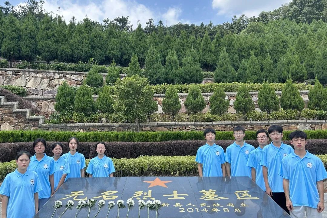 实践团的成员们紧跟主席脚步去到了此行的第一站:鄂豫皖苏区烈士陵园,瞻仰革命烈士纪念碑、纪念堂,远眺英雄山上“红旗飘飘”主题雕塑。团队成员们在烈士广场上沉痛默哀,礼敬花篮,英雄已逝,精神长存。生逢盛世,大学生应始终铭记先烈,缅怀传承,怀揣着敬意和感激的心,继承革命精神,请缨挺肩新时代!