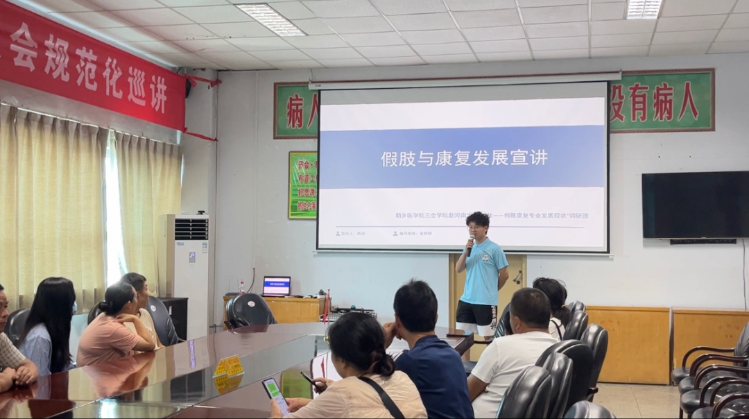 为深入贯彻党的教育方针,加强实践教学,提升学生的综合素质和专业能力,同时促进乡村振兴,新乡医学院三全学院赴河南医疗现状-假肢康复专业发展现状调研团团队于2023年7月15 日深入基层,在周口市、孟州市部分医院与社区用自身所学知识对假肢、康复器械治疗进行宣讲和调研,让更多的人知道并了解医疗器械和康复对患者具有哪些好处,让患者相信假肢,信任康复器械的治疗,让更多康复治疗进入到人们的生活。