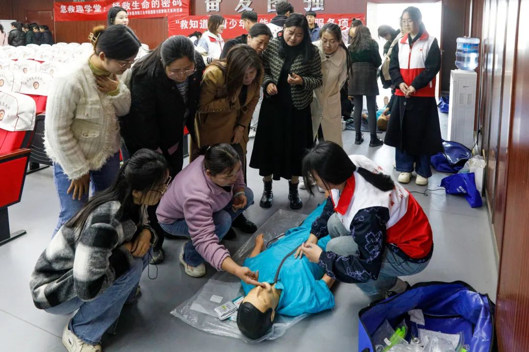 为进一步普及应急救护知识,增强安全意识,提高教师在突发事件中的应变能力,守护学生的健康安全,3月20日上午,校团委联合校党委办公室、德馨书院、护理学院共同前往龙源小学开展“救知道”赋能课堂志愿服务活动,龙源小学90名教师参加了此次培训活动。