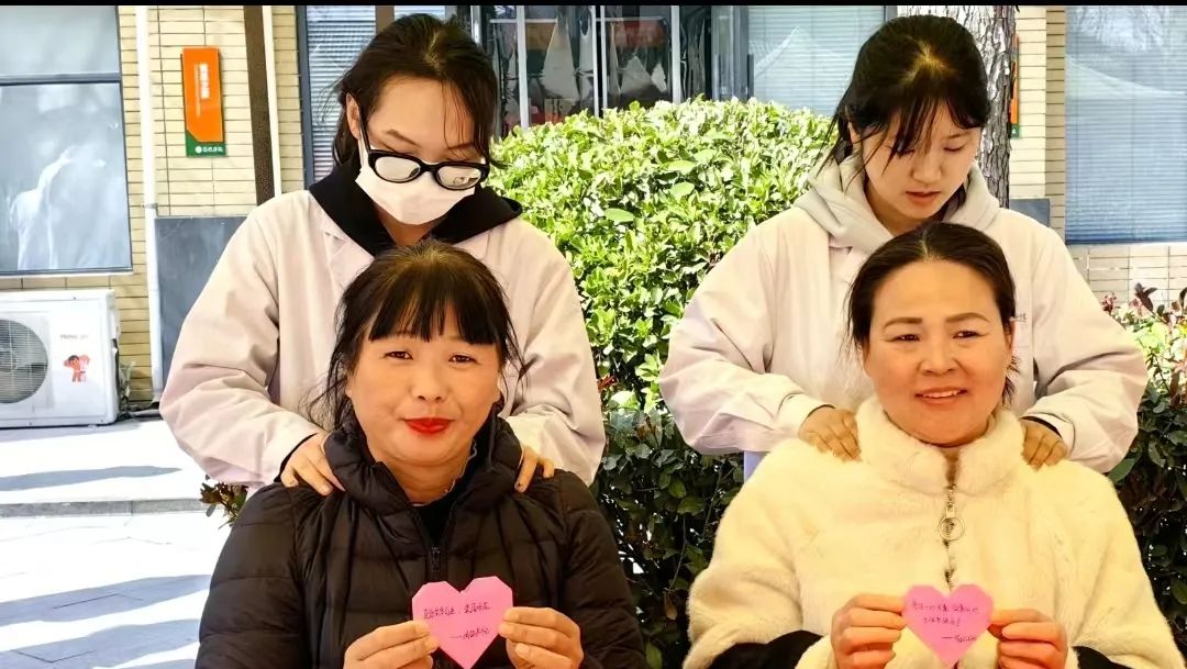 活动伊始,志愿者带领大家进行颈椎操、肩臂操学习,简单又实用,简短的开场操让大家放松身心。随着活动的深入,老师们纷纷上前体验,感受推拿带来的舒适与放松。有的老师闭上眼睛,享受着志愿者们轻柔而有力的按摩,仿佛所有的疲惫都被一扫而空;有的老师则与志愿者们交流着日常的健康小窍门,现场充满了欢声笑语。