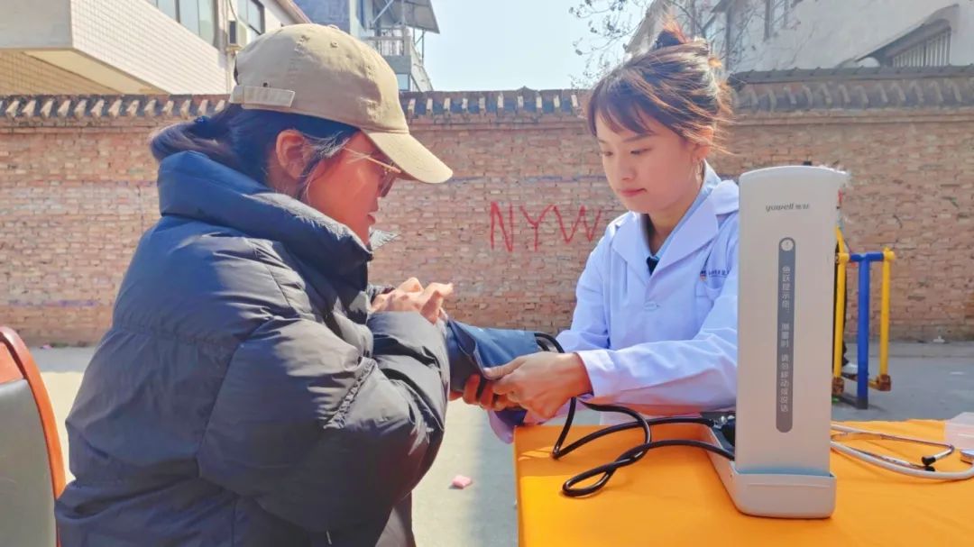 紧接着志愿者来到乡村社区广场,迅速搭起了临时义诊台。志愿者充分发挥专业知识和技能,为村民们提供急救操作科普、血压测量、推拿按摩、血糖测量等健康检查。他们一边为村民们进行义诊服务,一边耐心细致地解答疑问。在推拿按摩区,气氛更是活跃热烈,志愿者们手法熟练,力度适中,受到村民们的一致好评,进一步激发了志愿者们学好专业技能的动力。