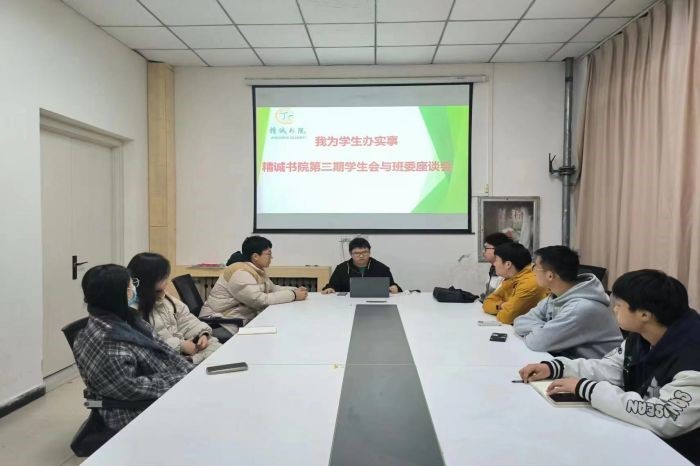 为加强书院学生会与班级之间的沟通,全心全意为学生服务,4月17日,精诚书院于会议室举行“我为学生办实事”交流座谈会,学生会与班级班委面对面交流,解答疑惑。书院始终坚持以学生为本,立足学生所需,为学生办好事、办实事并取得了良好的成效。